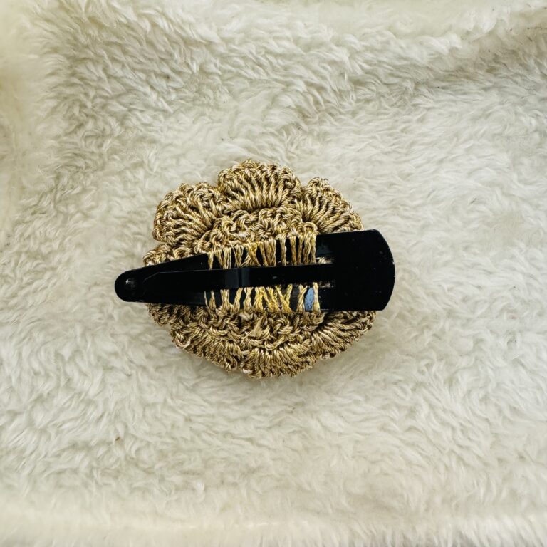 This exquisite handmade crochet baby pin features a beautiful golden flower design, perfect for adding a touch of elegance to any outfit. Crafted with soft, high-quality yarn, it is lightweight and gentle on fabric. The detailed flower shape and shimmering golden color make it ideal for accessorizing dresses, hats, or bags. Secured with a sturdy pin, it combines both style and functionality, making it a charming gift or a lovely addition to a child’s wardrobe!
