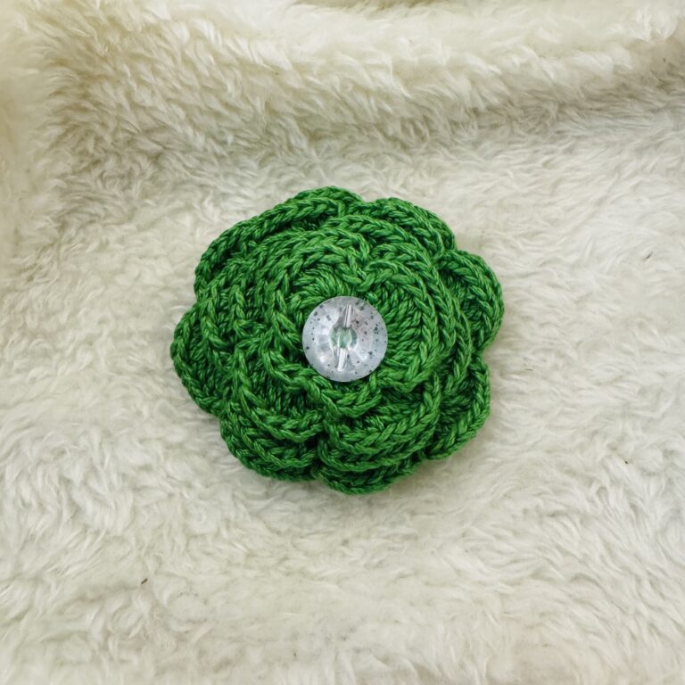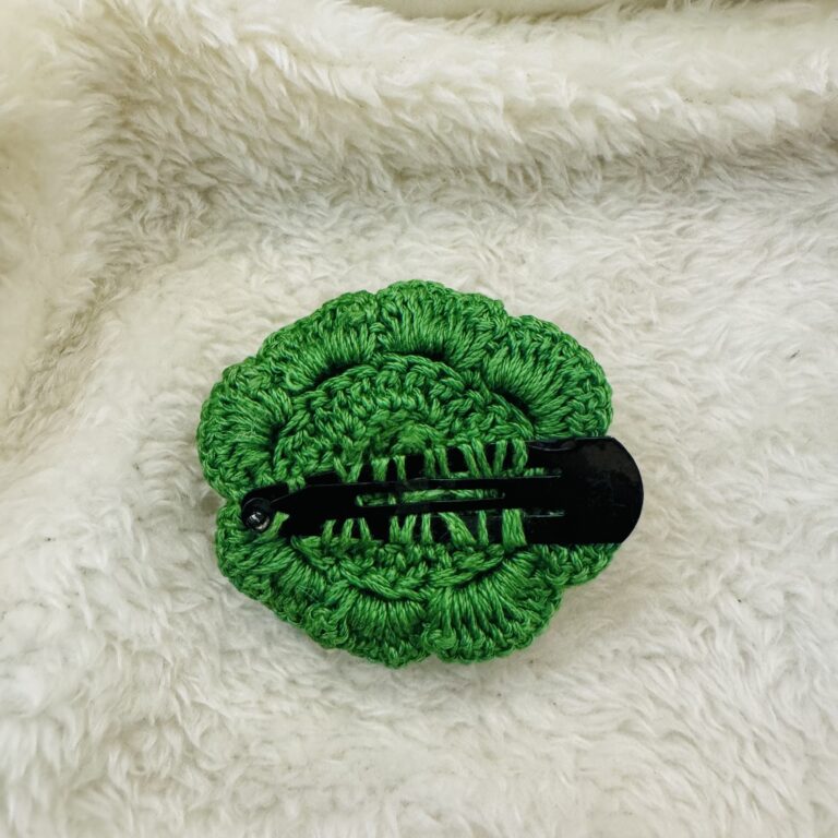 This charming handmade crochet baby pin features a vibrant green flower design, perfect for adding a fresh, natural touch to any outfit. Crafted with soft, durable yarn, it is lightweight and gentle on clothing. The detailed flower shape and lively green color make it an ideal accessory for dresses, hats, or bags. Secured with a sturdy pin, this versatile and stylish piece is a lovely gift or a delightful addition to a child’s wardrobe!