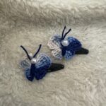 Handmade Blue & White Crochet Butterfly Hair Pins – Cute Accessories for Kids