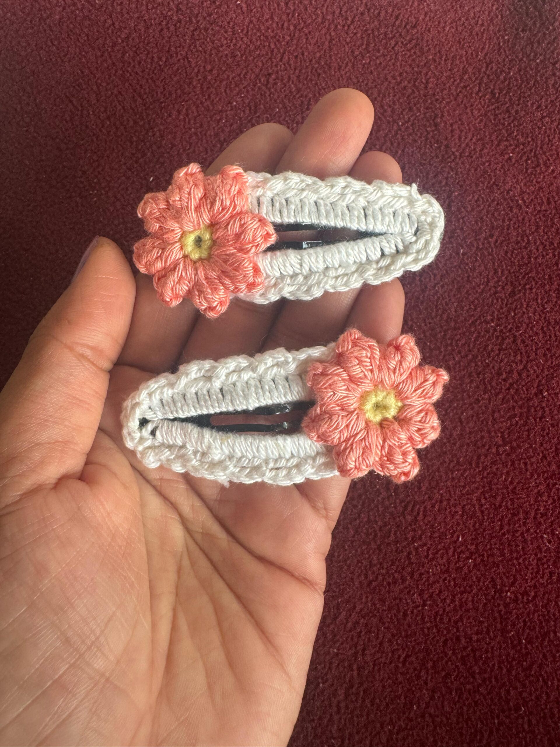 The Crochet Hairpin with White & Peach Flower is a delicate and charming accessory that adds a floral touch to any hairstyle. Handcrafted with high-quality yarn, it features a beautifully detailed white and peach flower design, bringing elegance and grace. Lightweight and comfortable, this hairpin is perfect for everyday wear or special occasions. Its eco-friendly craftsmanship makes it a thoughtful gift, offering both style and functionality in a unique handmade piece.