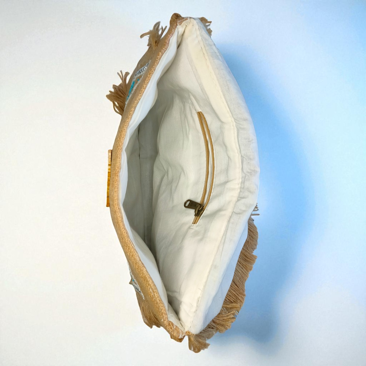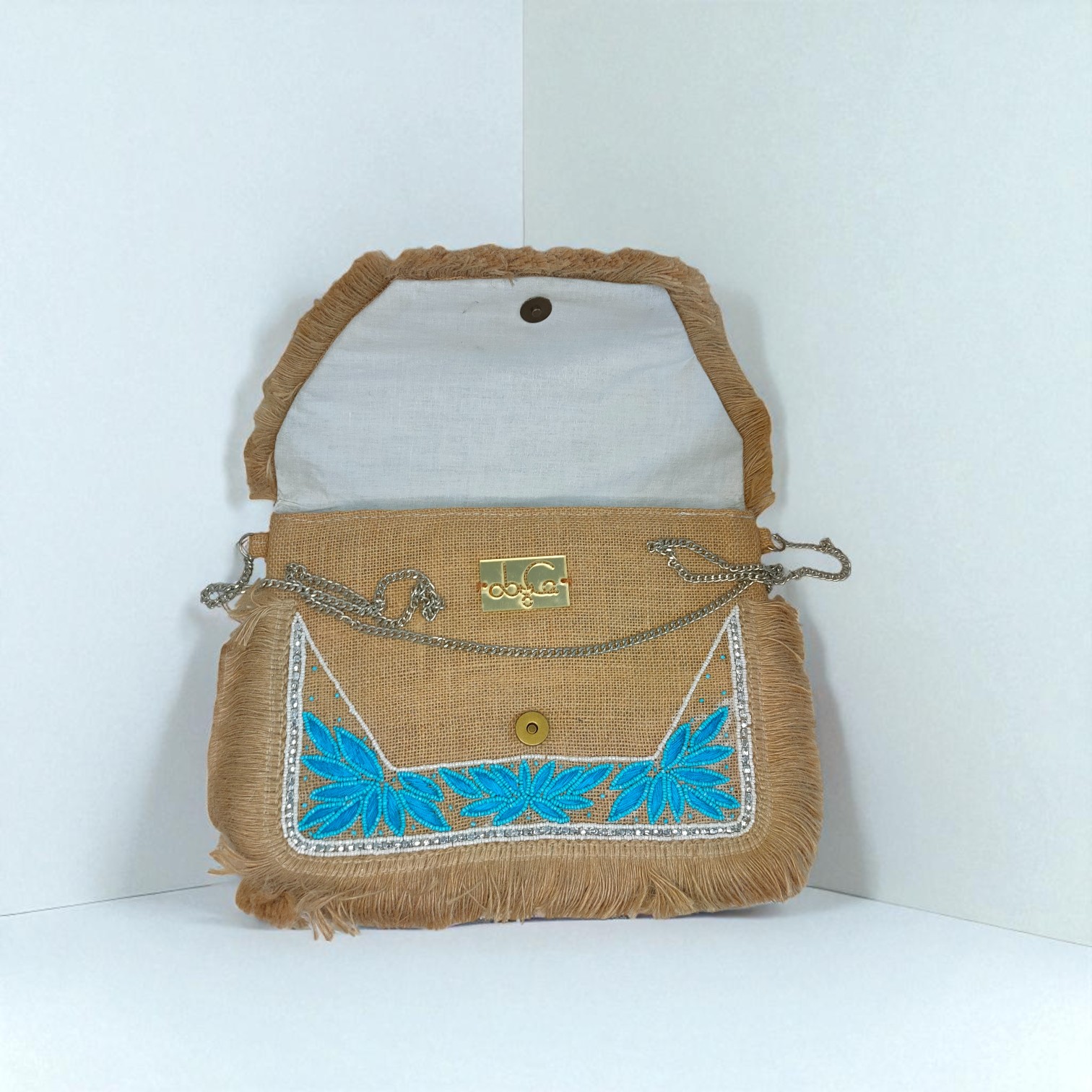 Add a vibrant touch to your outfit with this Handcrafted Boho Jute Sling Bag featuring bold blue floral embroidery and stylish fringe accents. Designed with an ethnic flair, this lightweight crossbody purse for women is perfect for casual outings, festivals, or everyday use. Made from eco-friendly jute, it offers durability with a unique bohemian charm. Stay trendy and organized with this chic handcrafted sling bag that blends fashion and function effortlessly.