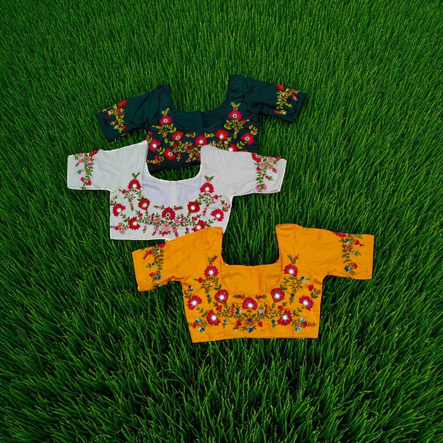 Enhance your ethnic wardrobe with this Handmade Embroidered Cotton Blouse Collection, featuring elegant floral designs in green, white, and yellow. Each blouse is crafted with vibrant threadwork that adds charm and sophistication to any saree look. Designed for comfort and style, these blouses are perfect for weddings, festive occasions, and cultural events. The breathable cotton fabric ensures ease of wear, while the intricate embroidery highlights traditional artistry beautifully.