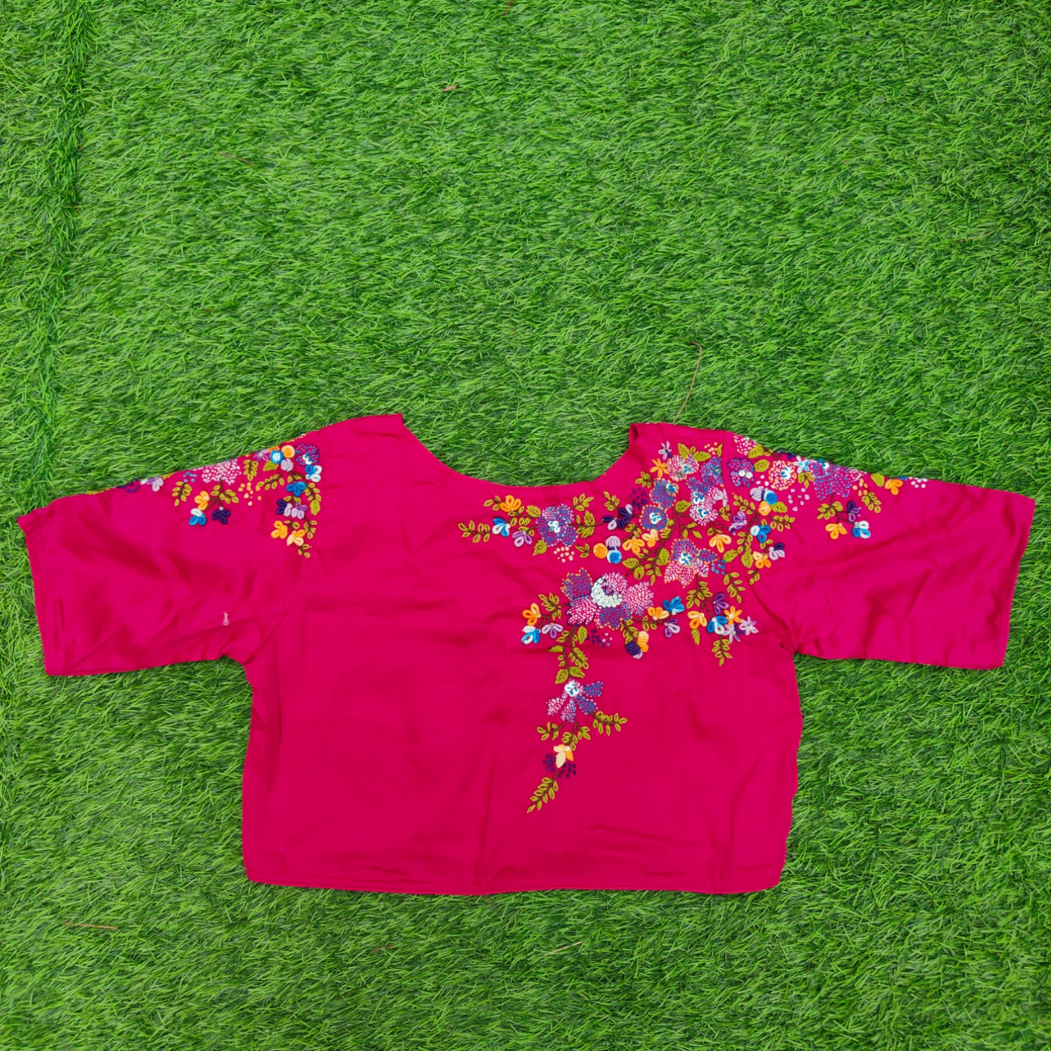 Handmade Embroidered Cotton Blouse – Elegant Floral Work Saree Blouse for Women