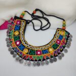 Add a bold ethnic touch to your look with this Handmade Embroidered Tribal Necklace featuring colorful mirror work, intricate thread embroidery, and antique coin charms. Perfect for pairing with sarees, lehengas, kurtis, or boho outfits, this statement jewelry enhances your festive and casual style. Lightweight and adjustable, it’s ideal for weddings, parties, Navratri, and cultural events. A must-have boho chic necklace for women who love unique handcrafted jewelry.