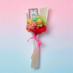 Celebrate Raksha Bandhan with this handmade bouquet, specially crafted for your sister. Featuring vibrant crochet scrunchies, delicious chocolates, and a festive Rakhi greeting card, it’s the perfect blend of love and creativity. Thoughtfully wrapped in pastel shimmer paper with a cute pink ribbon, this unique gift is ideal for expressing affection and appreciation. Surprise your sister with this beautiful Raksha Bandhan gift that’s sweet, stylish, and memorable.