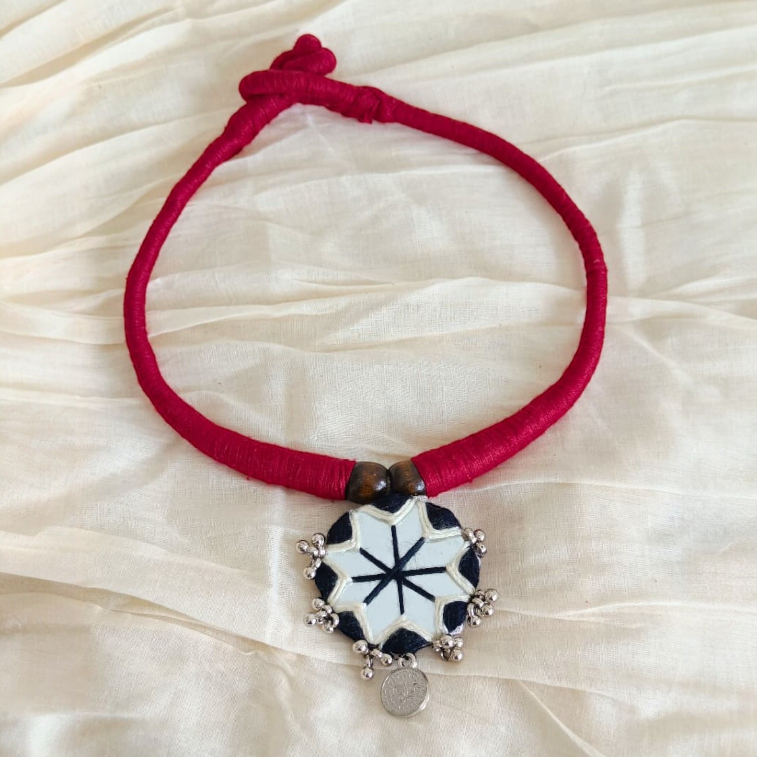 Elevate your ethnic look with this beautiful handmade thread necklace featuring a unique pendant adorned with bead accents. Designed for women and girls, this lightweight jewelry piece adds a touch of tradition and charm to any outfit. Perfect for festivals, casual outings, or special occasions, it pairs effortlessly with sarees, kurtis, and dresses. A stylish and thoughtful gift for loved ones.