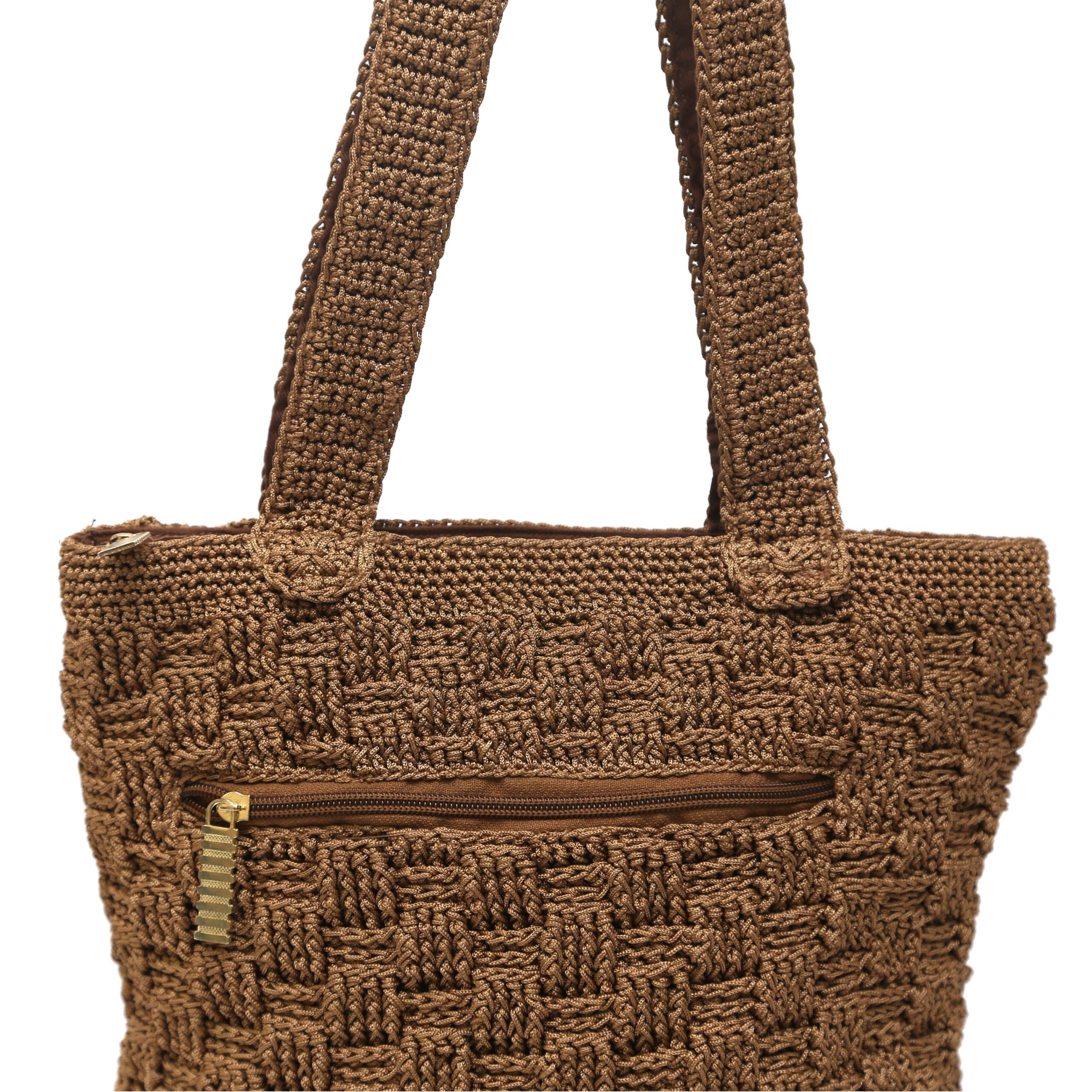 The Rustic Weave Crochet Tote is a beautifully handcrafted brown handbag with a rich, textured pattern that adds charm and durability. Made from high-quality yarn, it offers ample space for daily essentials, making it perfect for casual outings, shopping, or beach trips. Its sturdy handles and earthy tone give it a timeless, rustic appeal. Stylish yet practical, this versatile tote blends traditional craftsmanship with modern functionality for everyday use.